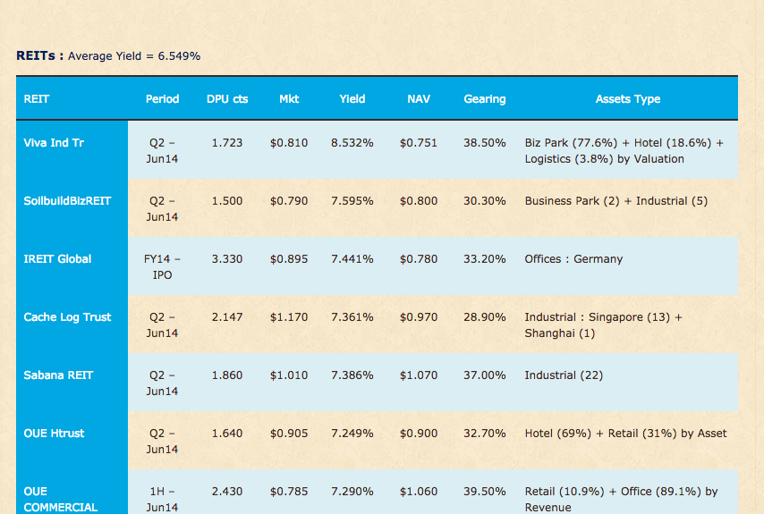 新加坡股票 , 最讓人印象深刻, 就是他們的 reits ,,, 有非常高的現金股息值利率