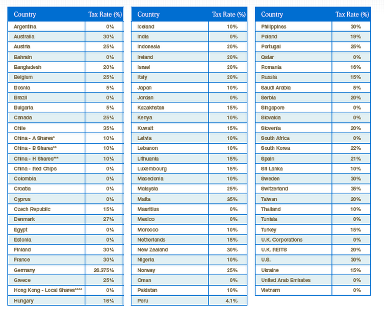 3. 我以收股息為主, so 選股息扣稅率=0 的國家,ex :UK brazil, argentina….